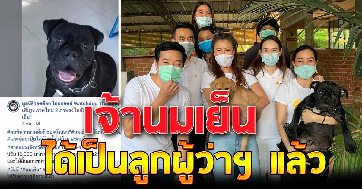 ล่าสุด เพจ มูลนิธิวอชด็อก ไทยแลนด์ Watchdog Thailand WDT ได้เปิดเผยว่า ศาลแขวงจังหวัดชลบุรีได้ ตั ดสินผู้กระทำผิดแล้ว ศาลสั่งปรับ 10,000 บาท จำ 6 เดือน โดยให้รอลงอาญา 2 ปี บำเพ็ญประโยชน์ 1 ปี และให้สิ้นสภาพการเลี้ยงดูสัตว์ ซึ่ง นมเย็น จะกลับมาอยู่ในการดูแลของมูลนิธิที่เกี่ยวข้องและกรมปศุสัตว์